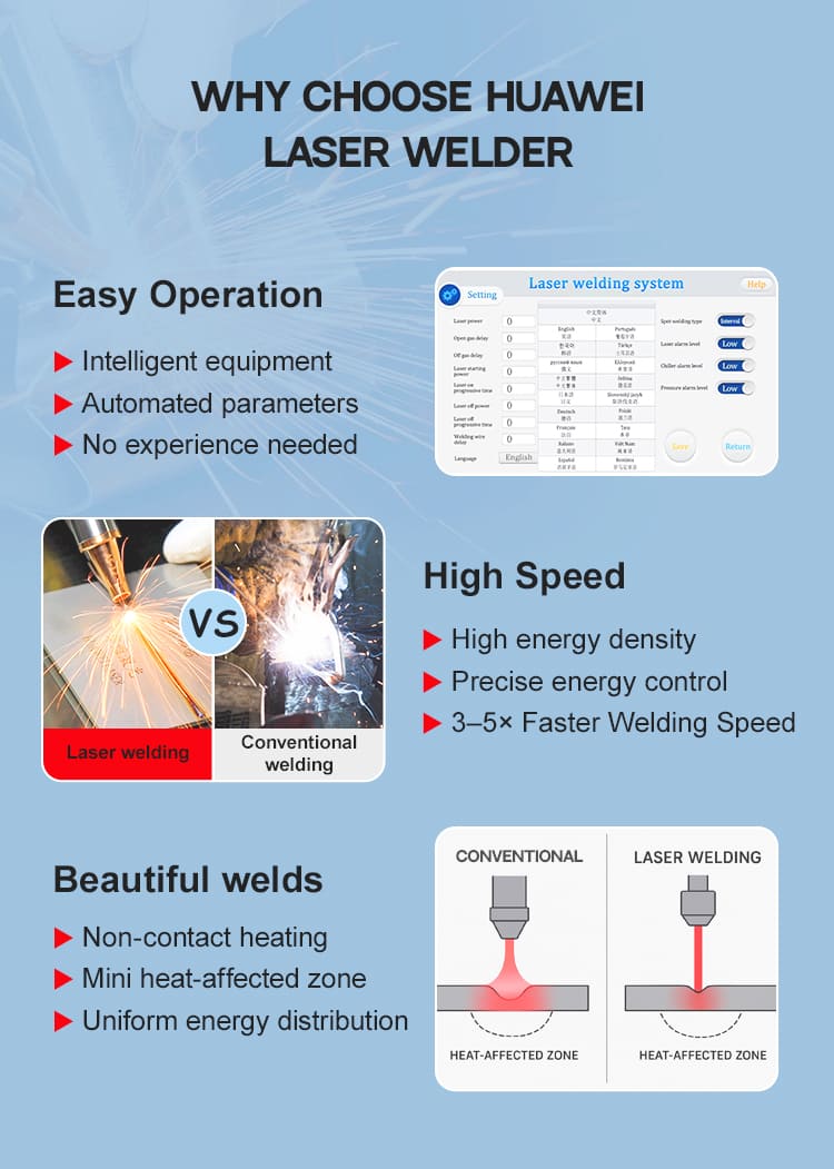 Questa saldatrice laser HUAWEI LASER 1500W 2000W 3000W durevole 4 in1 offre agli acquirenti una soluzione precisa, efficiente e facile da usare per la saldatura dei metalli di alta qualità. Progettato per lavori di precisione su acciaio inossidabile, acciaio al carbonio e alluminio, offre giunzioni lisce, penetrazione profonda e distorsione termica minima. La sua pistola portatile leggera supporta il funzionamento flessibile in spazi ristretti, rendendola ideale per officine, fabbricazione in loco e attività di riparazione. Con un rendimento stabile e requisiti di manutenzione ridotti, offre prestazioni quotidiane affidabili per varie esigenze di lavorazione dei metalli.