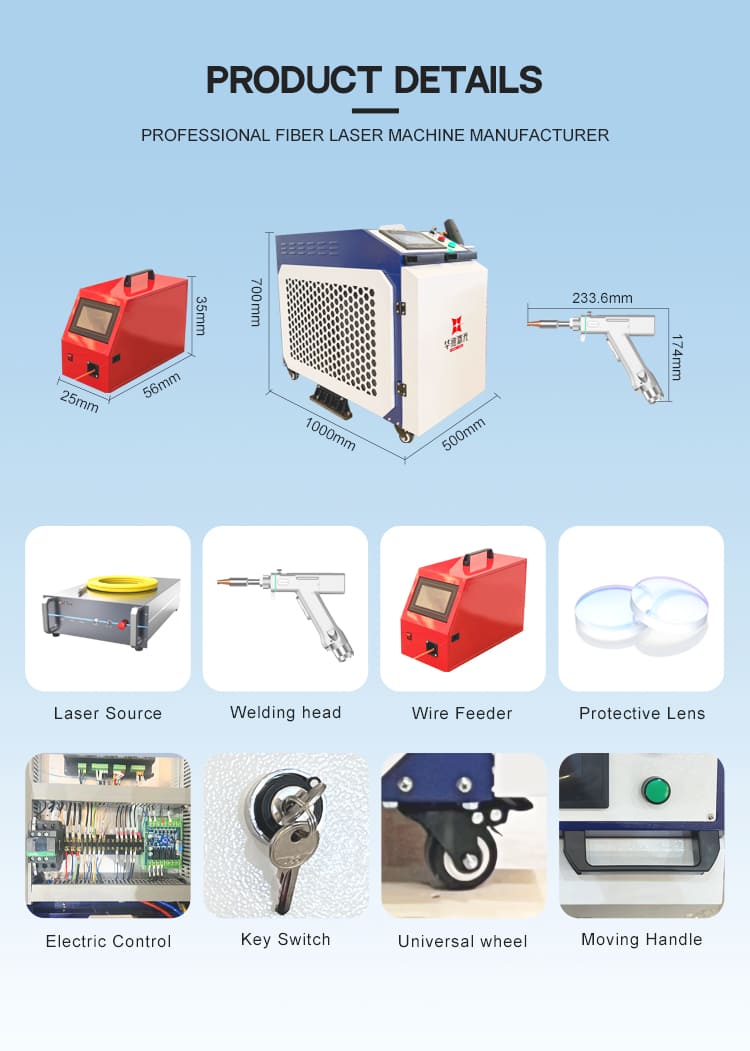 3. Funzionamento integrato: la saldatura laser portatile ha le caratteristiche del funzionamento integrato, senza necessità di staffe e attrezzature aggiuntive, funzionamento semplice e conveniente, adatto a una varietà di attività di saldatura, migliorando flessibilità e praticità.